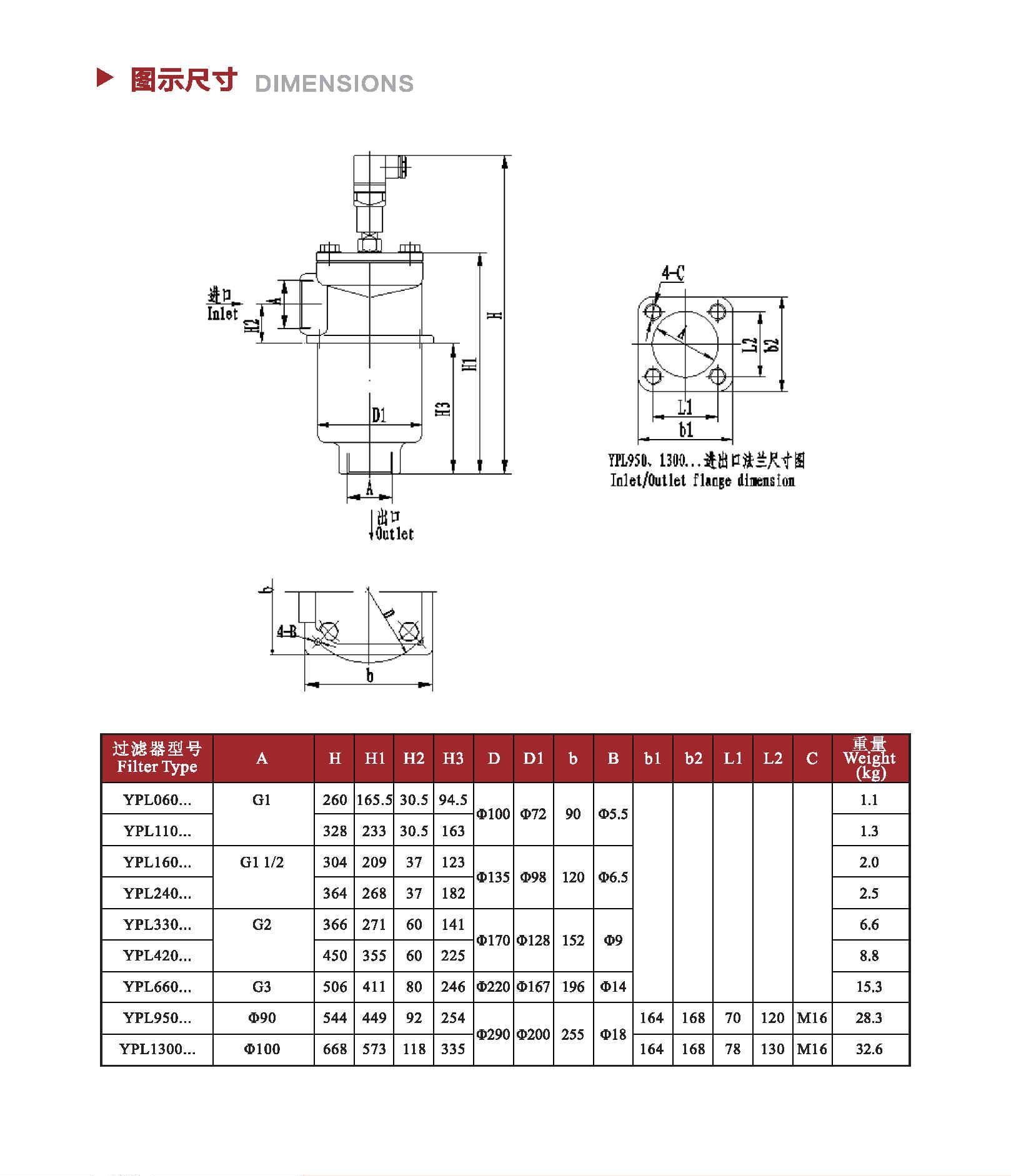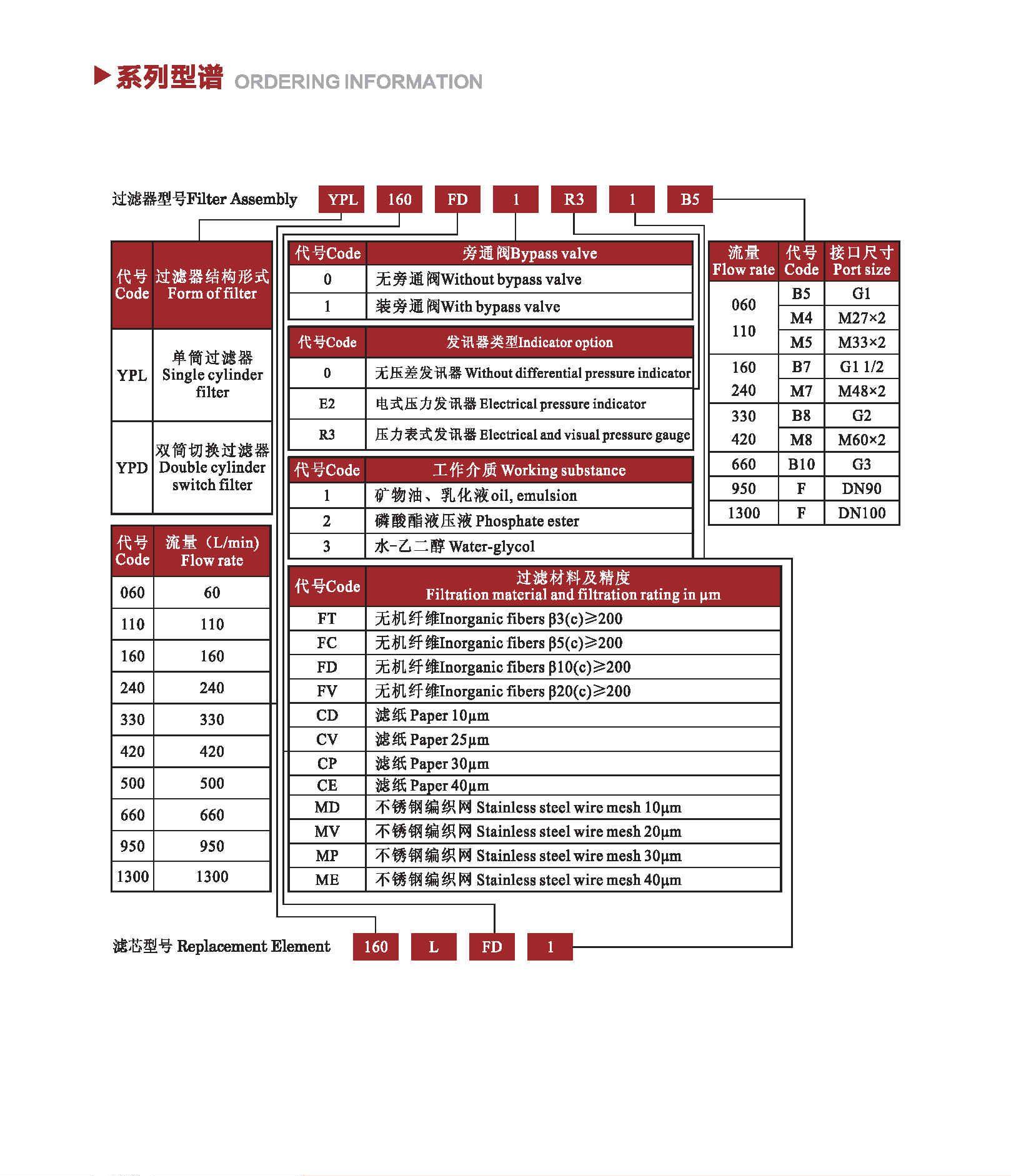 注:*為過濾精度,若使用介質為水—乙二醇,公稱流量160L/min,過濾精度10μm,帶CYB—I型發訊器,則過濾型號為RF•BH-160×10Y,濾芯型號為HL00160R010BN/HC。